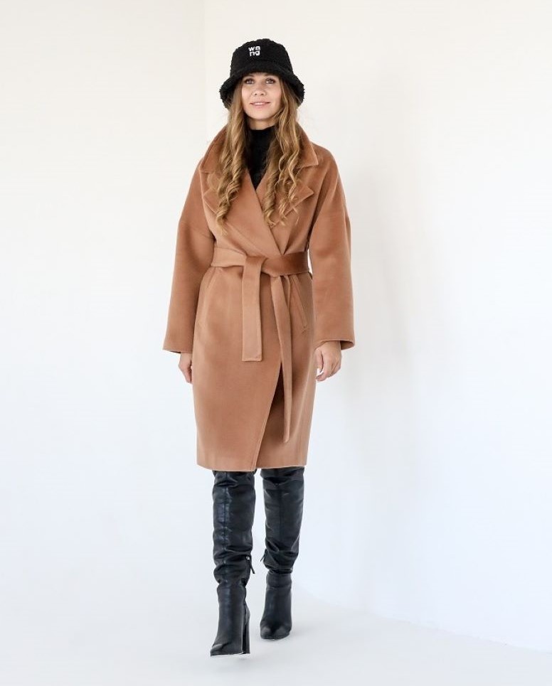 Прямой свободный силуэт, в стиле пальто-халат, без застежки, фиксируется поясом из основной ткани, по спинке на плече стильная вышивка металлизированной ниткой, сзади шлица