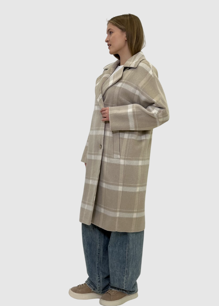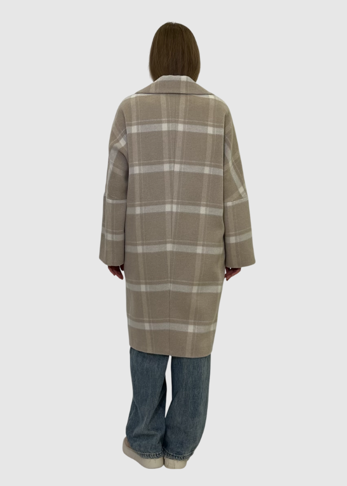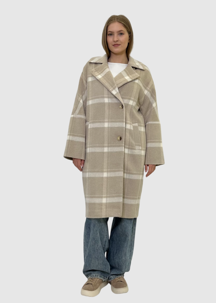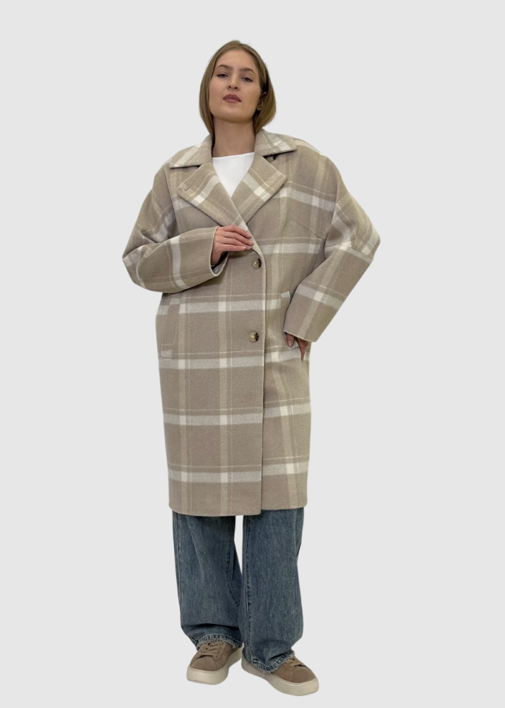Пальто бежевое в клетку