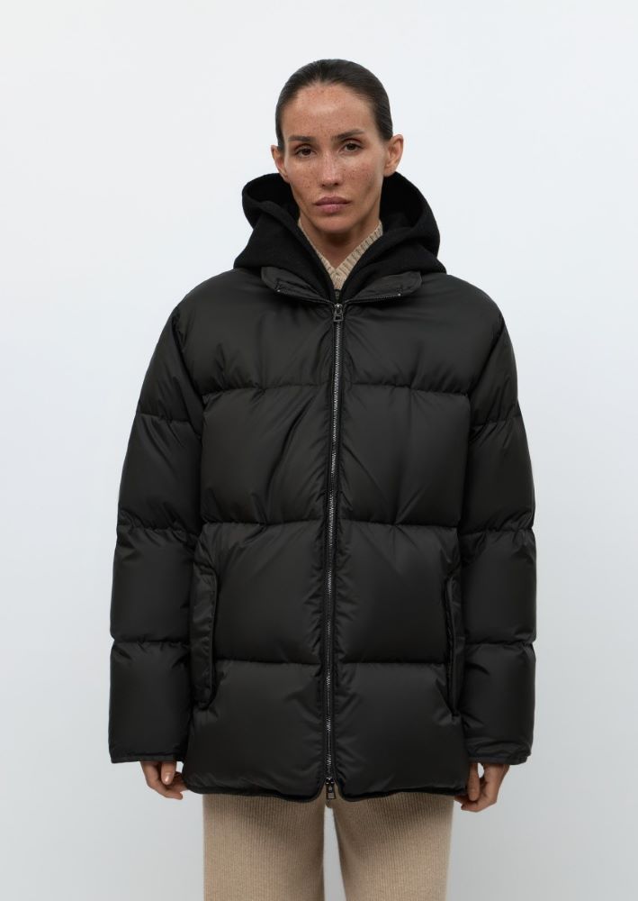 капюшон: 50% шерсть, 50% полиэстер; подклад: 100% полиэстер; наполнитель: 90% пух, 10% перо