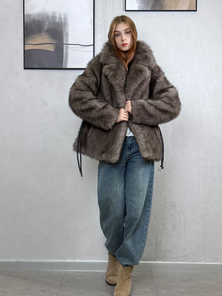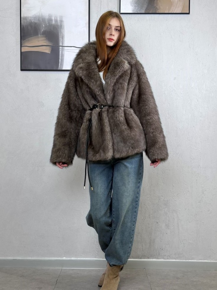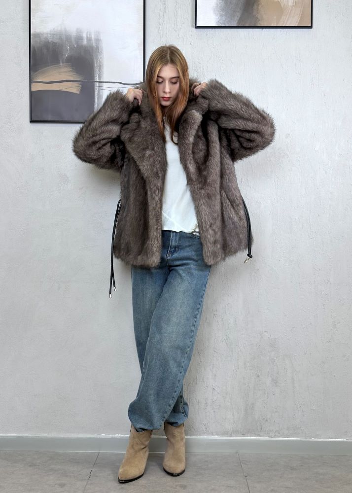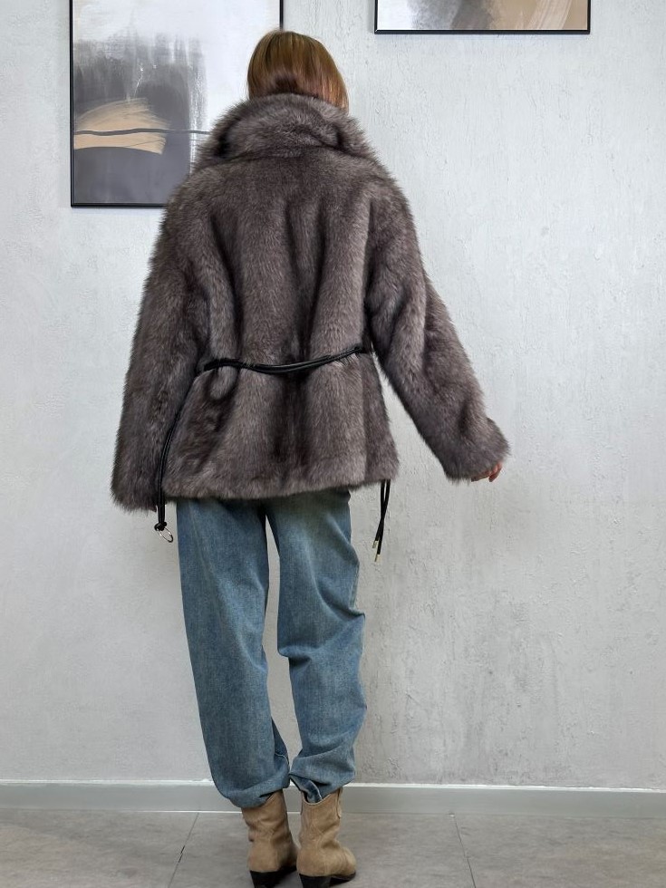Шуба искусственная серая