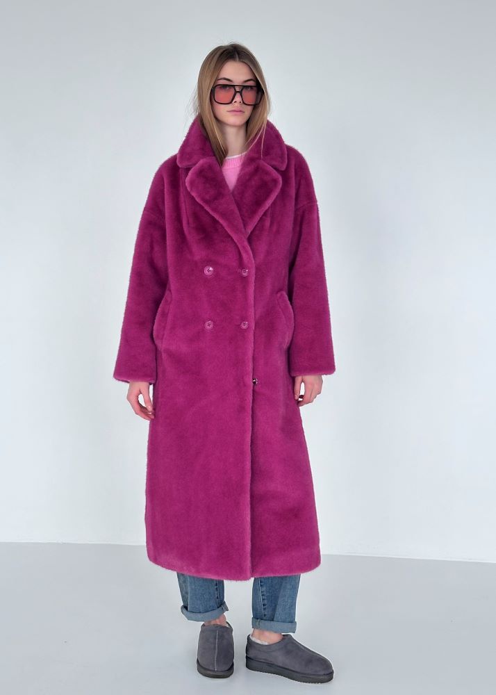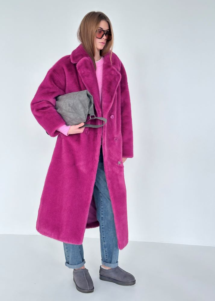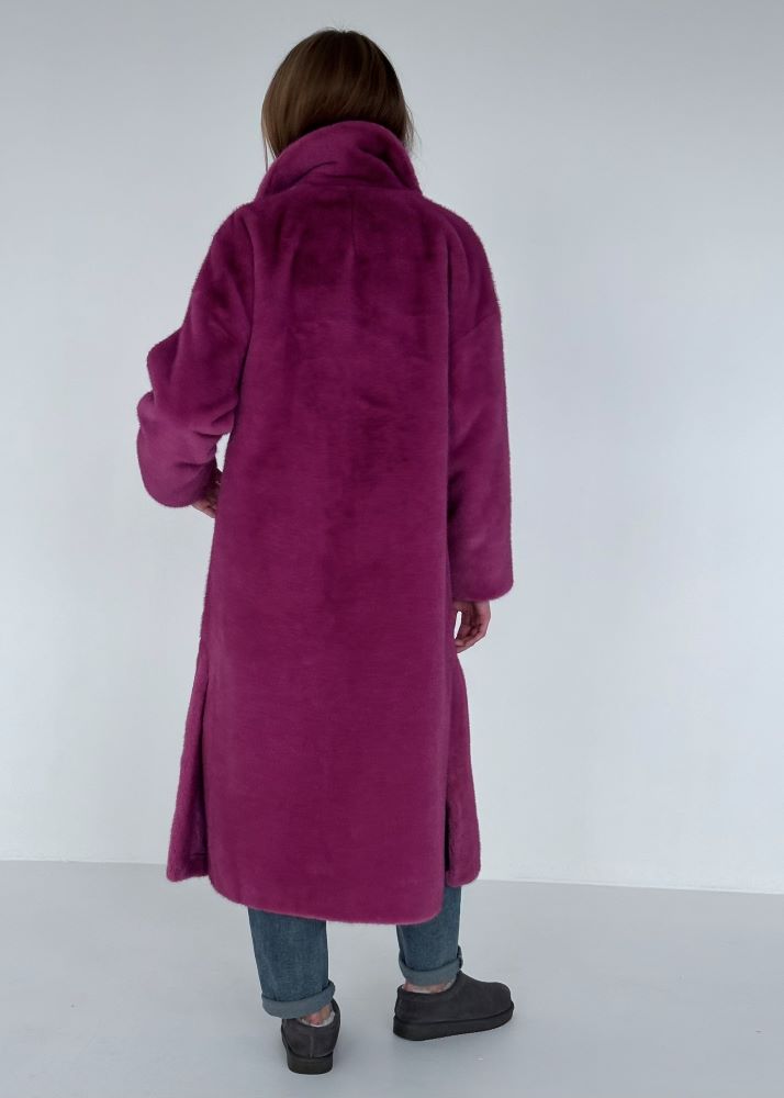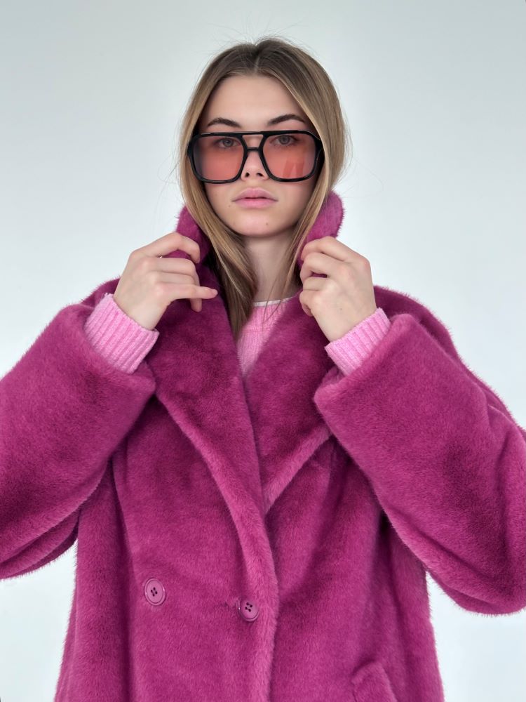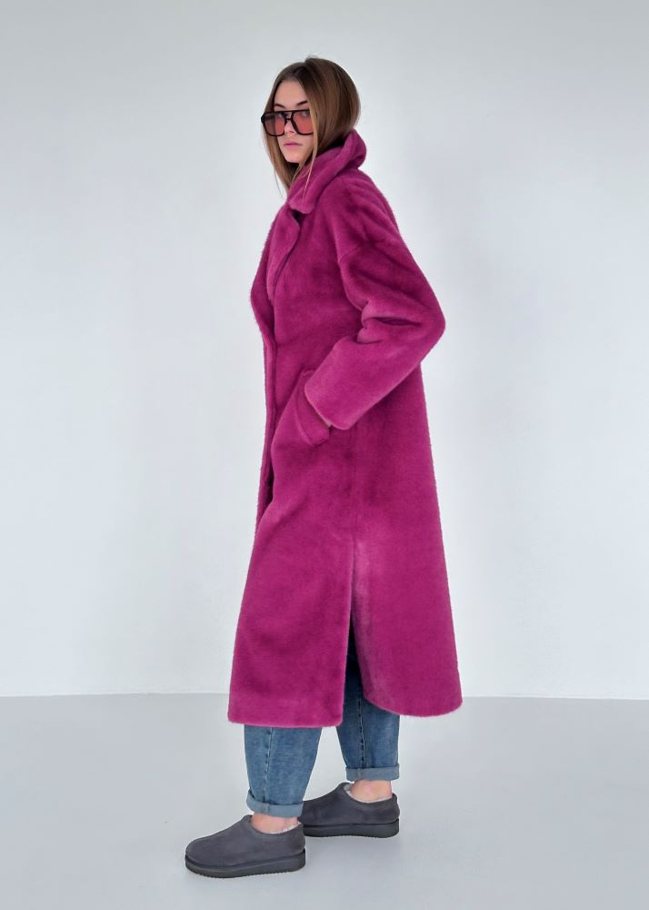 Шуба экомех розовая