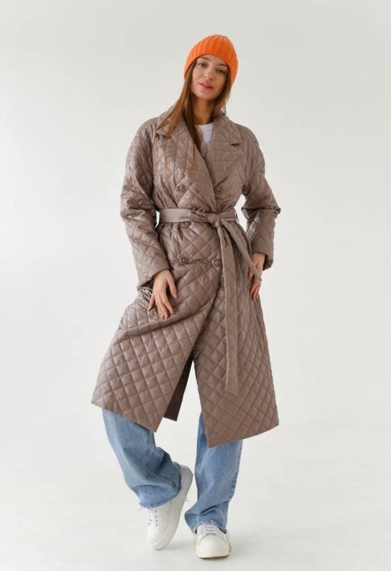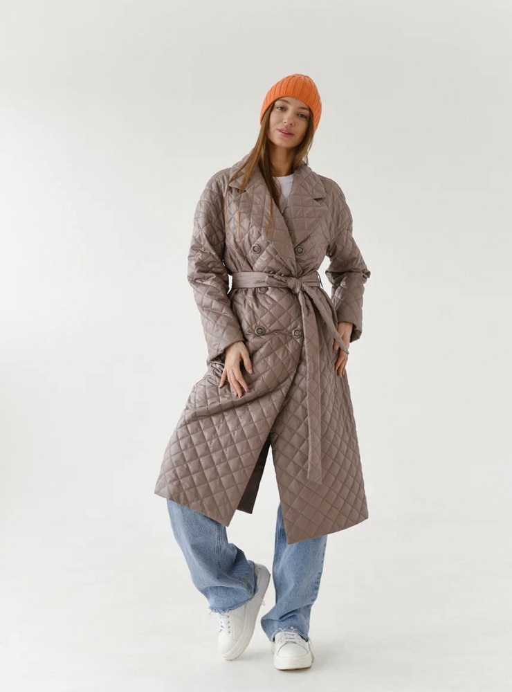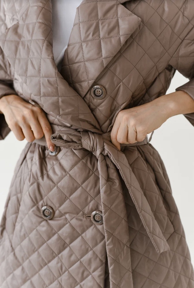 Для теплой весны и ранней осени, свободный, чуть зауженный книзу крой с плавной линией плеча. В мягком комбинированном покрое рукава предусмотрена ластовица, что гарантирует комфорт и удобство при движении. При желании, можно подвернуть рукава. Английский воротник с четкой линией обрезки, застёжка на акцентные пуговицы. Удобные карманы-листочки под наклоном. Шлица в среднем шве спинки фиксируется кнопками. Пояс из ткани верха в комплекте.прямой силуэт